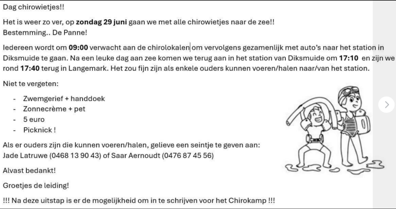 Geen chiro maar wel een andere activiteit zoals schaatsen, zwemmen, kerstfeestje,...? Hiervoor hebben we een aparte uitnodiging: